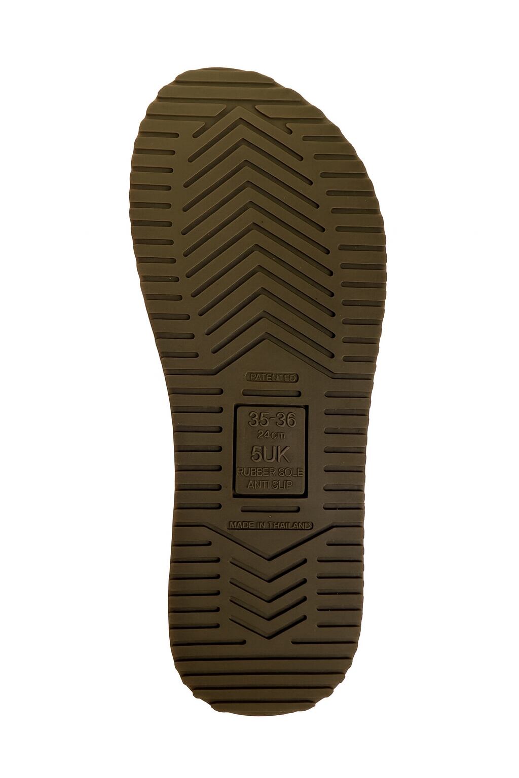 甲部分と足首の2本ストラップ仕様で安定感があり、歩きやすさも◎。